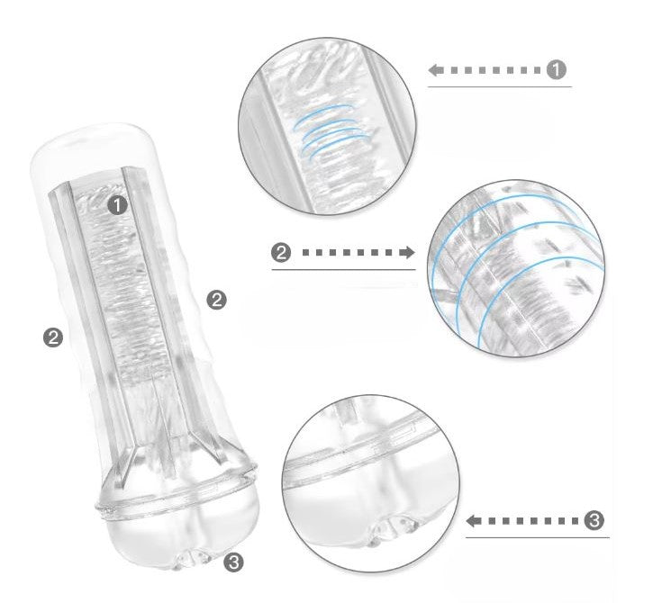 This transparent stroker satiates voyeuristic desires, giving you a clear view of every thrust into its supple and lifelike canal, lined with stimulating textures that wrap around you for maximum pleasure - gripping and massaging in ways that feel irresistibly real. Combining visual excitement with incredible sensation, the Clear Clunge turns every solo session into an unforgettable experience.