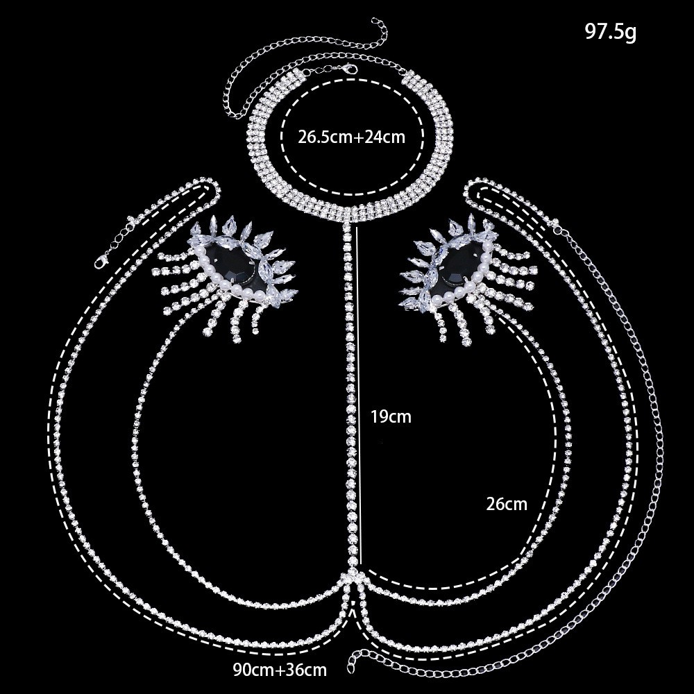 Rhinestone Eyes Choker Harness with Nipple Pasties